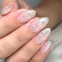 We want to see what you’re wearing on your nails! Hayley Winder, of Hayley Winder Hair, Nails, Beauty & Educator, wears ultra glittery nails, which went on to inspire her clients. “These nails were infilled using clear L&P, then I did a thin layer of Ideal Pink Builder Light Elegance Gel for a soft pink…