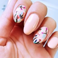 We want to see what you’re wearing on your nails! Laura Shep, of Nail It Byfleet, wears a delicate floral design. “I created the look using gel polishes that I mixed to create the colours I wanted and used a detailer brush to create the flowers. I used a lavender violet shade as the base…