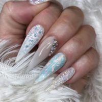 We want to see what you’re wearing on your nails! Lisa Lilley, of Love Lilley Nails, wears seasonal hues of green for a sophisticated yet glam nail look seeing marble effects and glitter. “For this nail design, I used Gelish in Ice Skate You Skate, Arctic Freeze and Last Call. I also used Magpie Beauty…