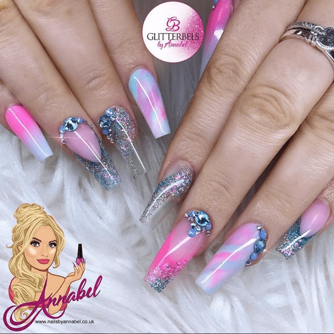My business started in my mother’s kitchen, but I soon moved on to renting spaces. My husband, Elliot, kept encouraging me to take the plunge and open a salon. I was hesitant, but now I’m so happy that I took his advice. As well as opening my two salons – Annabel’s and Bel’s Beauty Bar – it’s been an amazing achievement to also become a stockiest and ambassador for Glam and Glits. Besides creating my own brand Glitterbels, I am planning on creating a nail art and design group courses and offering one-on-one training for technicians too.