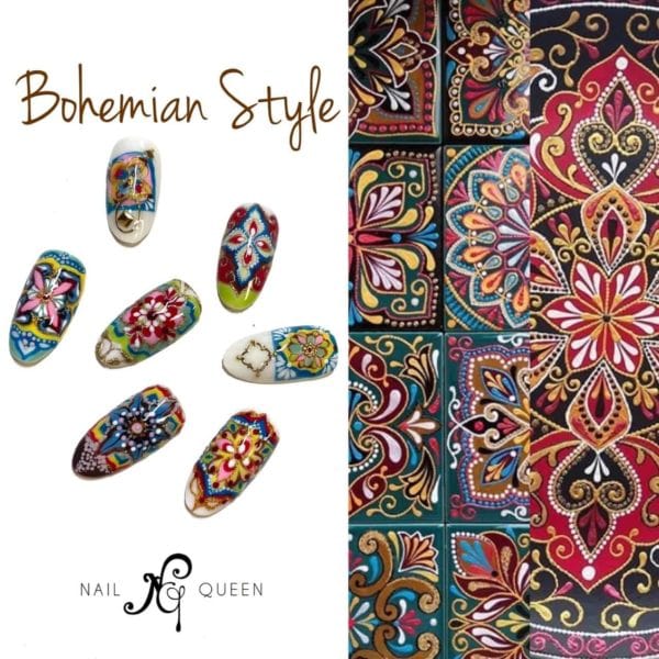 And, it gets better! Cat has created an online course for six of her Boho nail designs, which are now up and ready to download with the Beauty2Trs online training academy. Tracey Lee, its host and the brains behind this exceptional online academy (which houses a wealth of amazing educators from across the globe), cites, “Cat Wong takes the student through six step-by-step Boho-inspired nail designs right from the original sketching to the finished nail. The class is suitable for beginners and practical salon work and covers; planning the design, sketching it, application onto the nails, detailing, finishing and a bonus class too.”