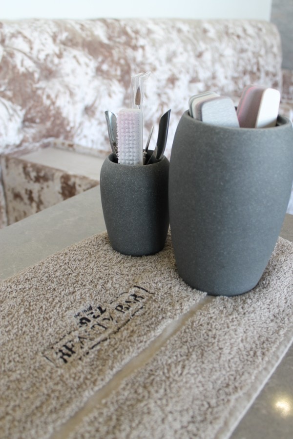 After I was treated to a Gelish manicure in spring-friendly shade, Picture Pur-fect with nail art discs on the ring fingernails, Jazz showed me the rest of the vast premises; a room featuring state of the art Ergoline lay-down sunbed, another with treatment bed with soothing dim lighting, and a treatment room with two beds; and plenty of natural light pouring in through the windows. Even the two toilets (one tailored to clients with disabilities) were impeccably furnished, with the natural theme running through.