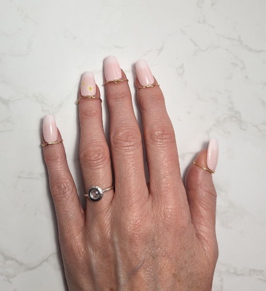 Upon realising that options for nail rings in the UK were severely limited, with all the available nail rings at the time coming with high shipping costs from abroad, Karen began handmaking nail rings to sell alongside her press-on nails on her website. An easily removable alternative to traditional nail enhancements, the nail rings offer a fully customisable and damage-free solution to clients who are unable to commit to an overlay on their natural nails.