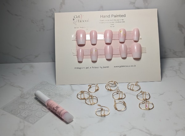 Karen Boyle’s full package with glue, nail, rings & nail tabs