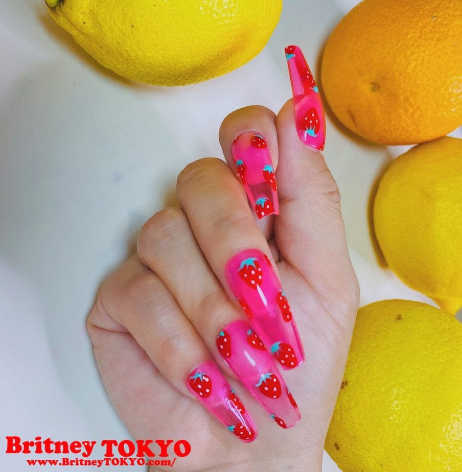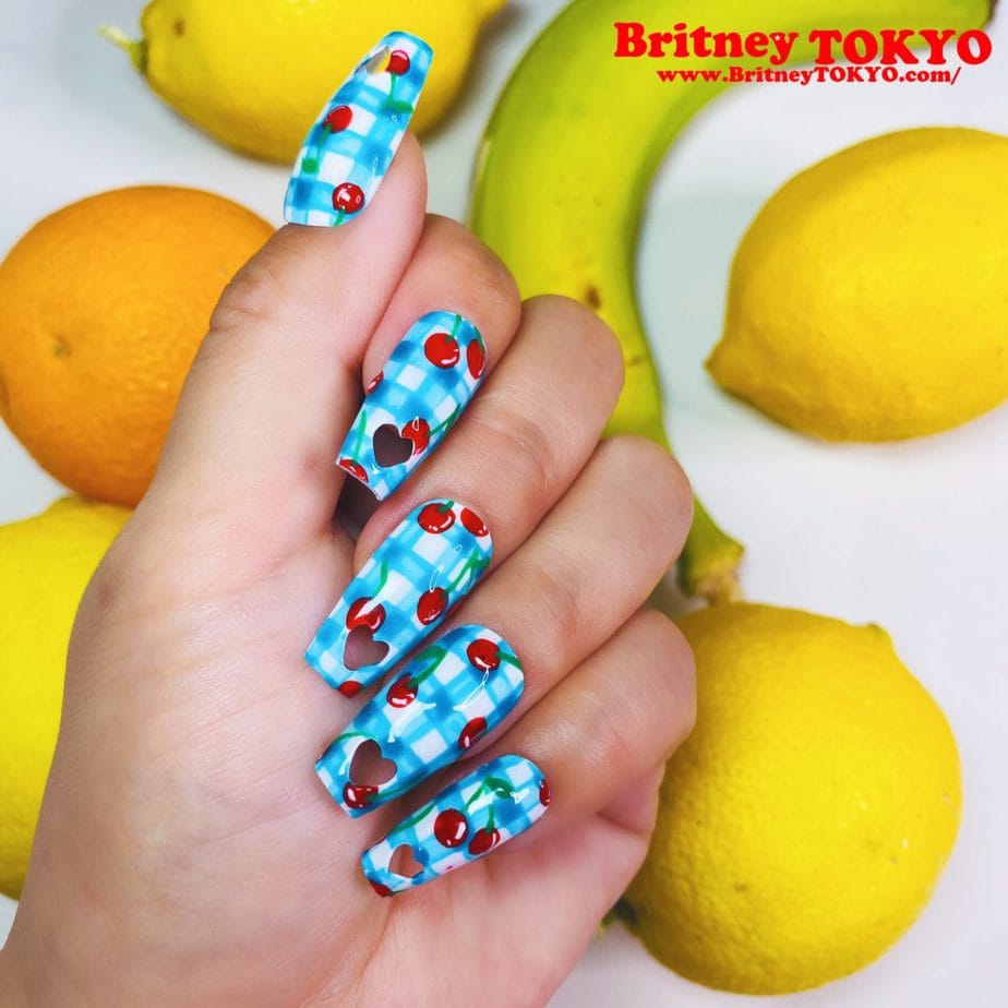 Fruity nail art is a design that singer, Harry Styles, rocked a few months ago. This theme not only looks great on women but also on daring male clients. It can work really well on shorter nails as well as on long enhancements, bringing a pop of colour to any outfit. I think we may even see couples rocking matching fruity nails this summer!
