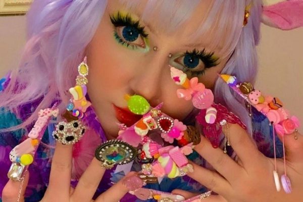 A passion for Japanese fashion since childhood led Nana Sharp from Texas, USA, to explore the idea of taking this fashion onto fingertips. When no obvious outlet for obtaining a stylised individual set of gyaru-style nails became apparent, Nana posted a request on Facebook. Unsurprisingly, this led to a flurry of rude and obnoxious comments from those on social media with little else to do; yet fortunately it also opened the door to a sprinkling of nail techs that were keen to help and fulfil the brief. As Nana notes, “Out of the group, Anna Lou’s work stood out most to me.”