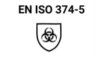 This standard confirms if a glove is suitable for use with biological agents. The two parts of the standard are represented by two symbols below. The criteria to meet these standards is high.
