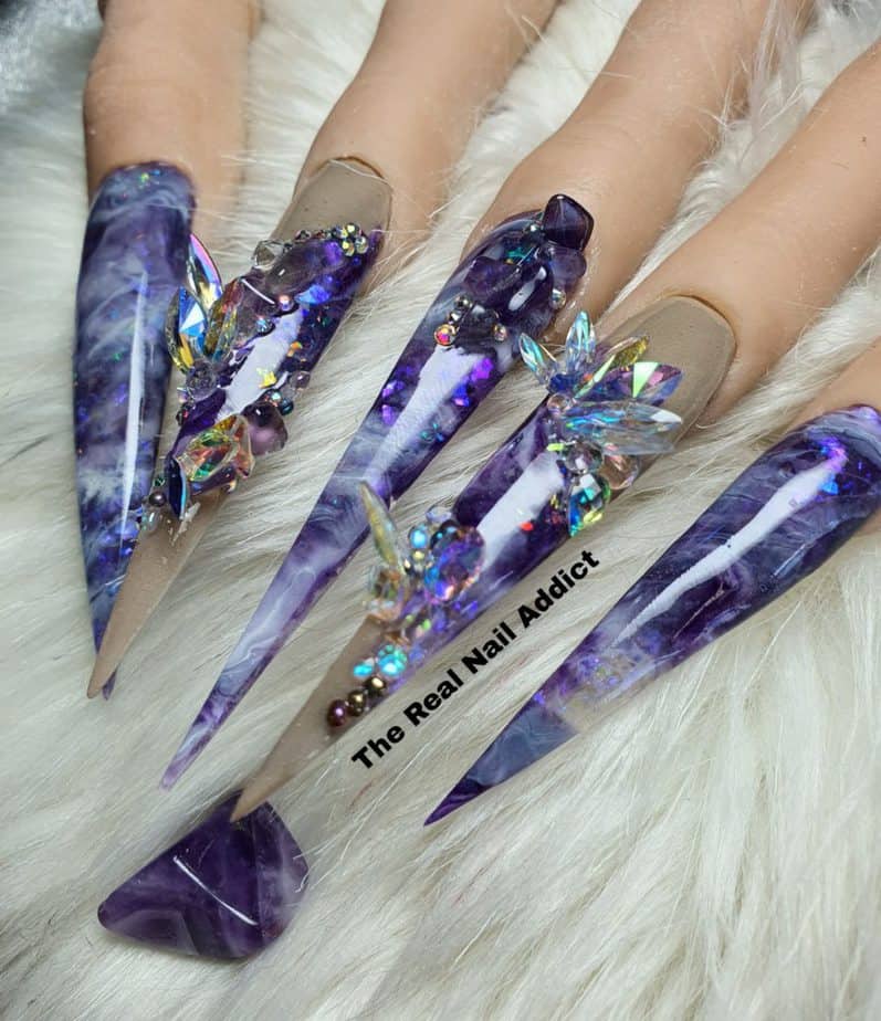 “These nails were created as a symbol of my life story so far. The needles represent the darkest part of my life and the flowers showcase the abundance and growth nails have allowed me to take. I thank the whole nail industry for making me the woman I am today and I’m excited to see where life takes me next. One thing’s for sure, it’s going to be a lot better from here on in.