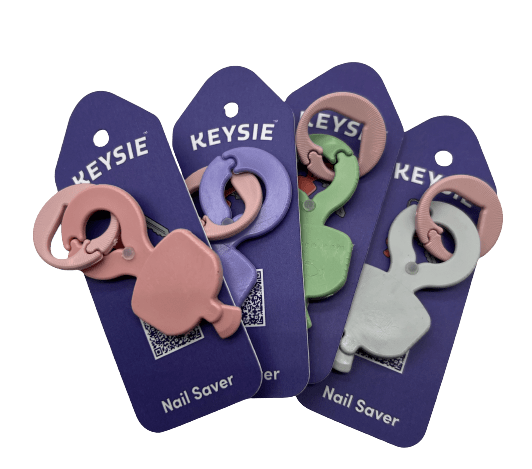 The Keysie, which can clip onto a keyring, is a tool that can be used to save fingernails from jobs that may prove damaging, such as: