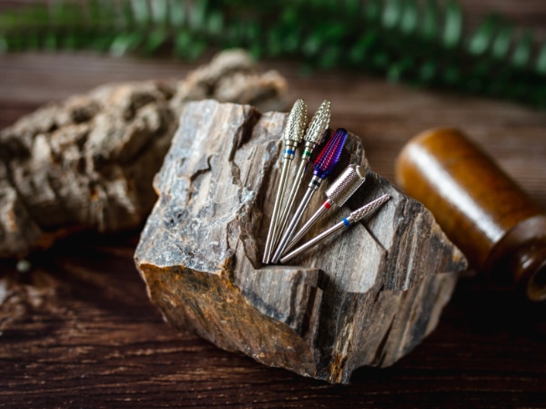 - Mandrel bits – used with sanding bands to smooth surfaces, prep the nail and remove gel polish.