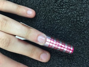 Nails are not all one size or shape, so it is likely that you will need to pre-customise your form prior to fitting under a client’s nail, especially that of a nail biter. Nail biters come in different degrees – from a nibbler to a severe biter. It is paramount that the form fit is flush under or at the free edge, even if there is not an apparent one in sight.