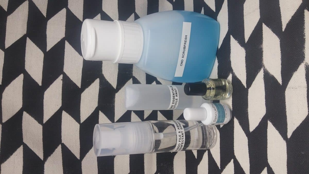 My kit used to be overwhelmed with full sized liquids. Now that I’m using smaller, travel-sized bottles, my bag has a more organised and minimalistic feel that I love. This was a top tip I picked up from session nail technician, Trish Lomax, when I worked as part of her team on a Burberry show at London Fashion Week.