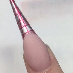 To ensure you aren’t adding unnecessary bulk to the nail and still keeping it aesthetically and structurally correct, you also need to ensure the item you are using is not too thick for the length and shape of nail you are creating. When encapsulating 3D work, ensure it is kept thin, to avoid filing through this. If you are creating a thin platform with clear or coloured product, it is essential that this is as thin as possible, just a ‘wash’ of product is necessary to provide a platform to work on. If this is too thick, you will experience the same problems as above. The thickness should be no more than that of a tip.