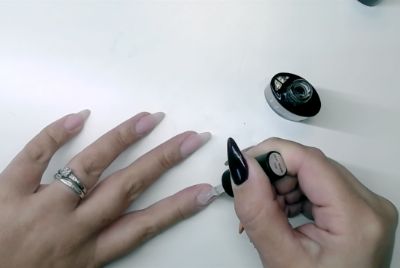 Pure Nails head of education, Tina Bell, suggests starting off with the little finger and the ring finger nails. Once those have cured, move onto the other hand and do the same nails. Then continue with the rest of the other nails to save help speed up the process.