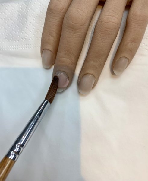 TIP – The flat tip of the brush is used to pick up the acrylic bead. The tip is used at the cuticle zone and blending the acrylic beads.