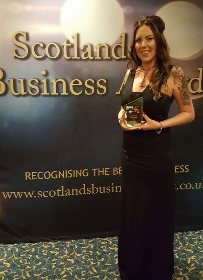 I trained in acrylic at first and, from that, I decided to leave college. I then trained to the highest level I could, course after course, and I am now a CND Grand Master. I started working for myself after the first year of training, by my second year I had opened my first salon and by my third year I won my first award, which was for my dedication to education. I have also worked backstage and London and Paris Fashion Weeks, gone on to win another two awards as the Best Nail Salon in Angus and placed second in the whole of Scotland, and appeared in nail magazines both in the UK and America.