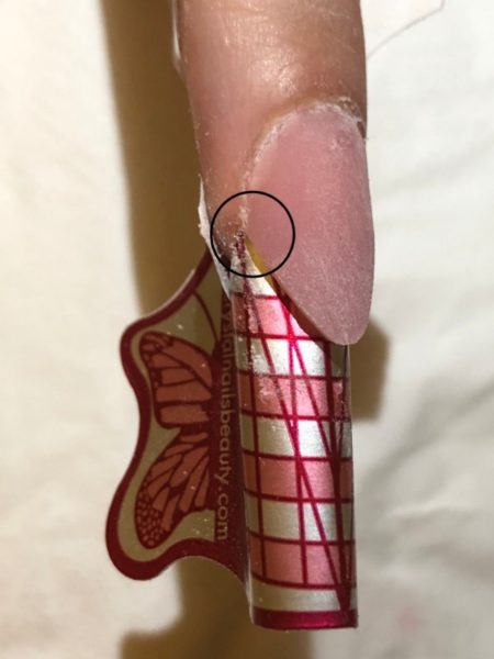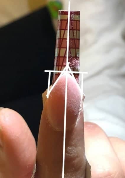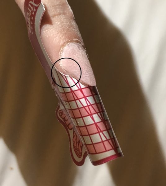 When fitting a tip or form, reduce the length of the natural nail to a rounded shape prior to creating your smile line shape. If the natural nail corners are poking out, this will affect the crispness of your smile line shape.