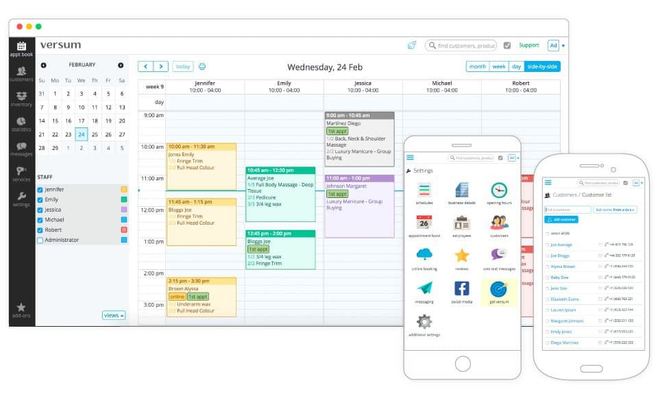 Used by 26,000 hair and beauty specialists in 34 countries, Versum software can also store information such as client allergies, before and after pictures – and even what type of coffee client prefers. The online booking option means that the booking page can be linked to Facebook, and clients can book directly from there, and the appointment reminder feature can help to reduce no-shows by 70%.