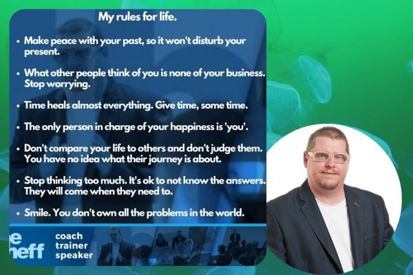 I have a number of ‘life rules’, which I use to set my mind, and the mind’s of others, on a more positive route.