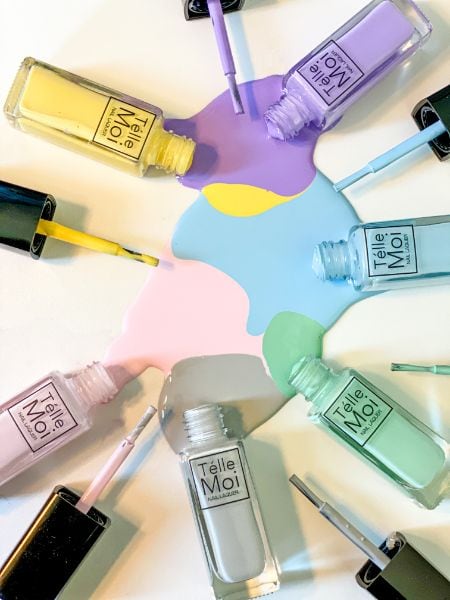 She launched indie nail polish brand, Télle Moi, in April 2019 with four nude nail polishes – and has since expanded the range to 24 glossy, quick-drying hues.