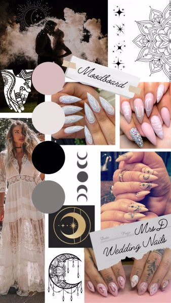 Following this, Holly uses her background in fashion to present a mood board of inspiration for the bridal nail look, along with sketches of the design.