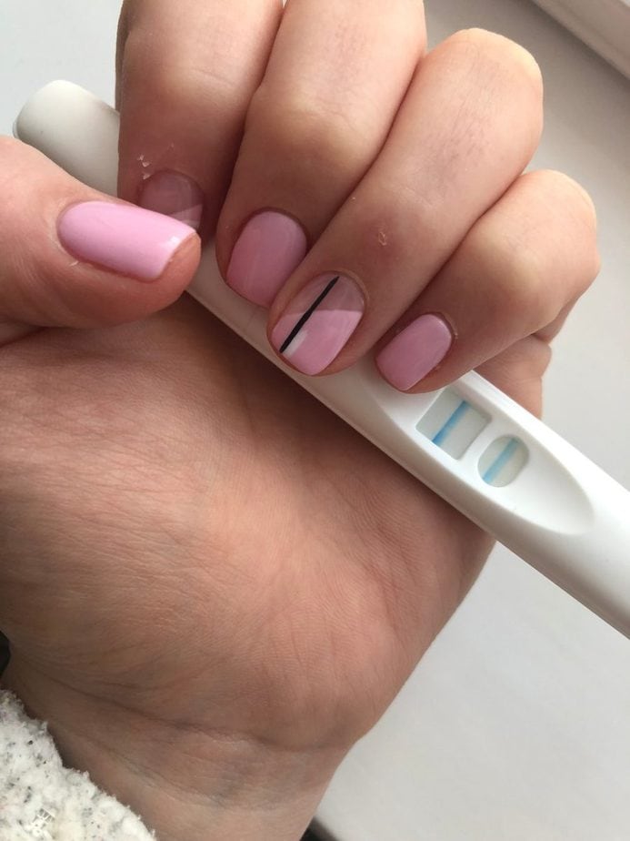 “Laura sent me a picture of the test with her nails to prove she wasn’t lying and that she went straight to buy one. The funniest part was, unaware of the pregnancy, the nail design almost matches the test!