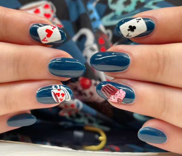“I love Disney and often get asked for Disney-inspired designs, but I’ve done everything from Alice in Wonderland to game Characters. I love hand painted nail art!”