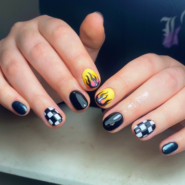 A lover of abstract styles, mix-and-match designs, and monochrome aesthetics, Millie Copsey discovered her passion for nail art during the lockdown, using her creative skills from her background in graphic design to carve out a career in nails.