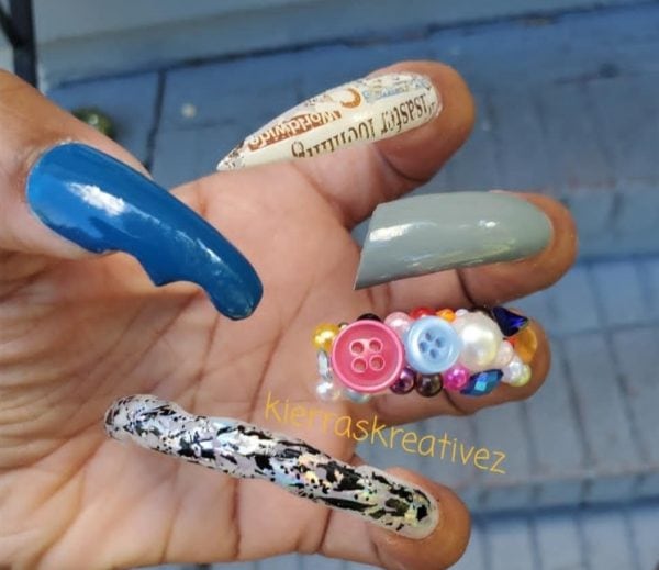 These accolades so early on in a nail career would make any nail tech smile, however a further career high was realised when R&B musician, Erykah Badu, noticed her Instagram content and commissioned Kierra for a set of press-on nails.