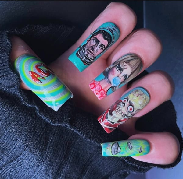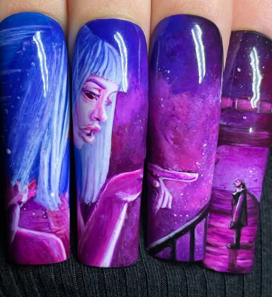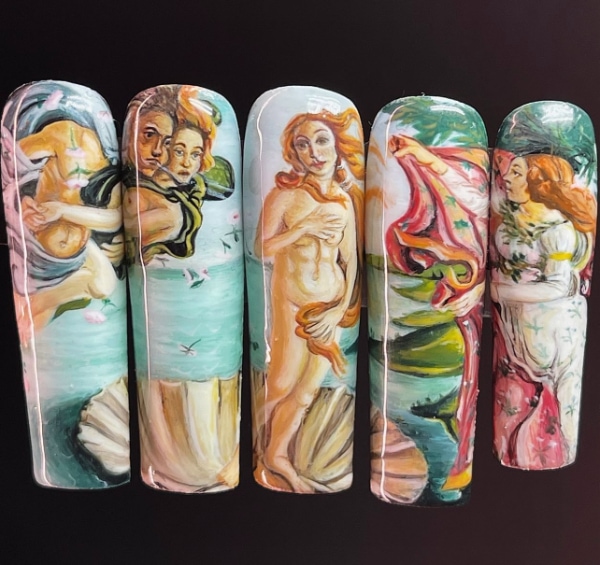 “The inspiration for my nail work comes from all over the place. A lot of my work is inspired by films and television shows that I love, historical paintings, tattoos and other artists.