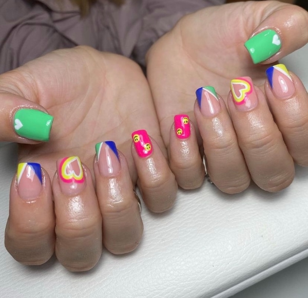 “I don’t really have a signature style, I just go with the seasons,” she explains. “Pastels in spring, brights in summer. I do love some negative space art or a coloured French, too.”