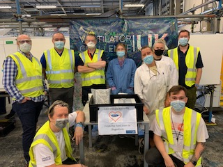 The Blue Shift station 13 team with the last ventilator assembled at Ford, Dagenham.