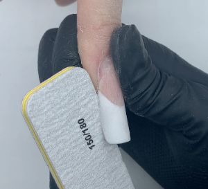 If using a tip, ideally select a tip with a lower arch where the fit is perfect. Tips that have a built in C-Curve can often provide a better lower arch. Avoid tips where this is already missing as you will not be able to correct this. If you find the tip digs in or putting pressure onto the skin at the end of the finger, then you need to remove some of the lower arch of the tip when filing.
