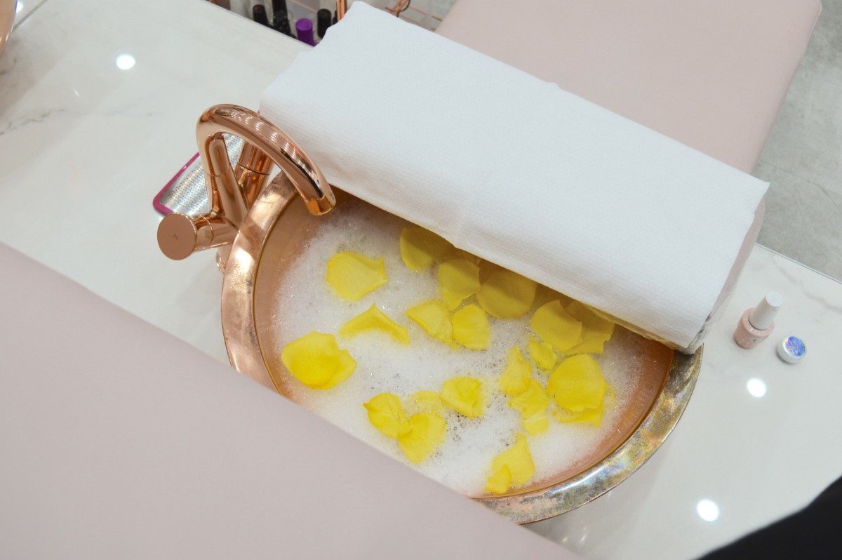 I was lucky enough to take a trip to the Marylebone location for the Nail’d It Signature Rose Manicure & Pedicure Combo. The treatment gets its name from the soak clients are invited to dip into: a copper manicure or pedi bowl full of floating petal leaves.