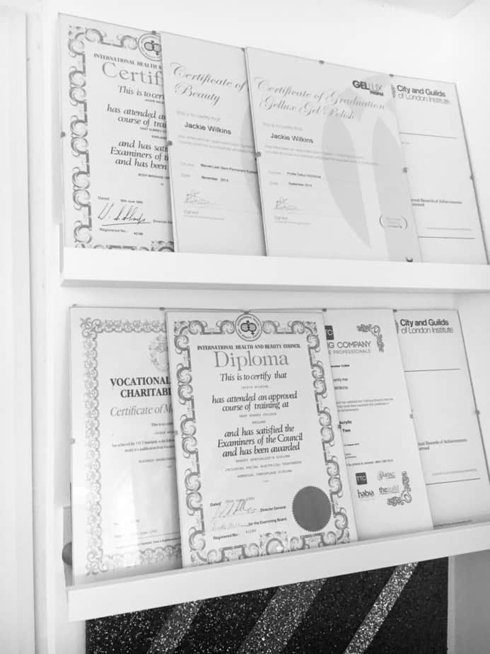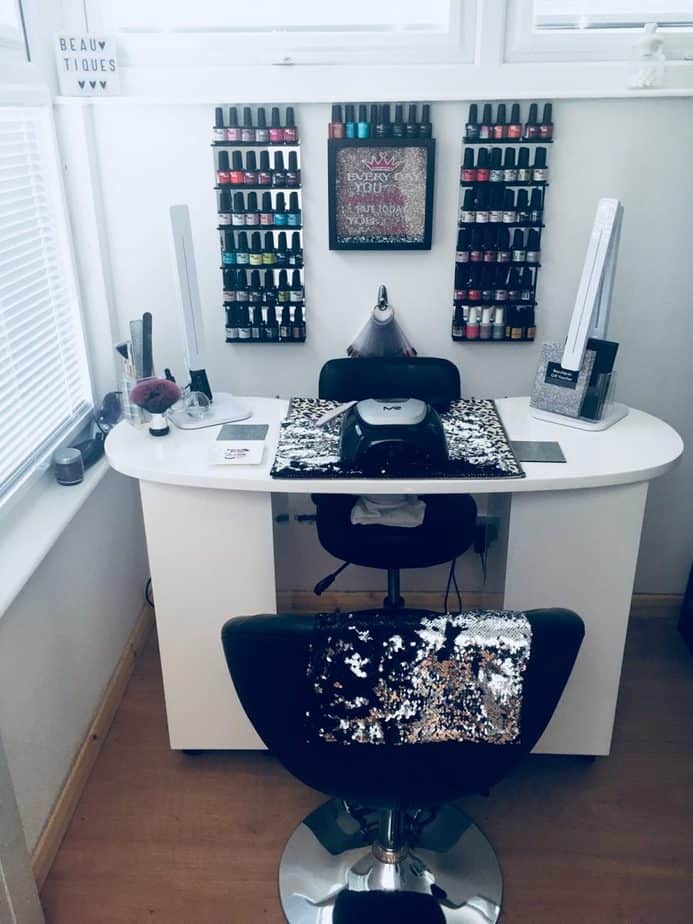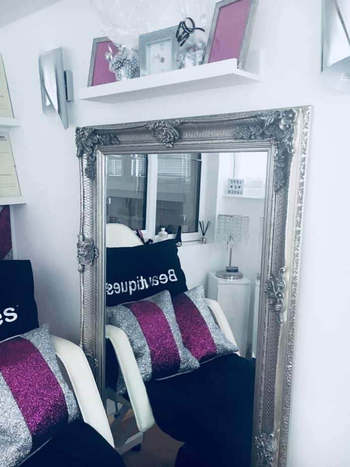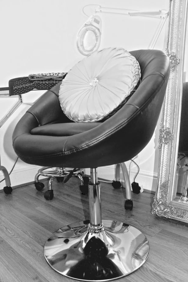 The salon sees a sophisticated décor, created by Jackie. “My theme is minimal, classy and sophisticated,” adds Jackie. “I like clean lines, simple colour schemes but most of all I love sparkles.