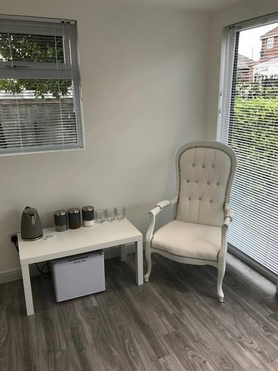 “I decided to have the salon decorated all in white with a grey floor. I felt white would keep the salon really light and bright and help make the space seem bigger. I have grey accents with my towels and kettle, and also touches of glass with a shelving unit. For my furniture I’ve gone with a white french shabby chic style with white leather and diamanté detailing. All my clients comment on the decor and how they like the minimalistic style I’ve gone for.”