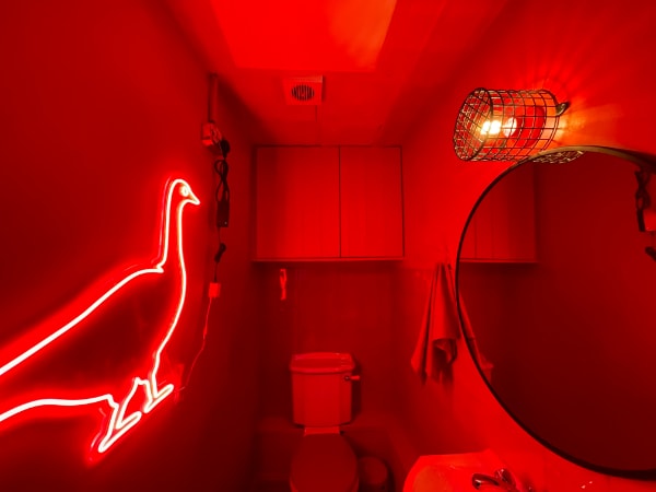 “I wanted to create a safe space, where everyone felt welcome, which I’ve tried to reflect in my decor. We have the nicest clientele – I wouldn’t say we have a typical client, as everyone who visits is different and unique in their own way, but they’re all lovely. We’re very very lucky,” Arabella shares. “My favourite part of my set-up is the big neon GOOSE sign as you walk in, it’s a real eye-catcher.”