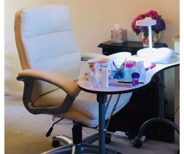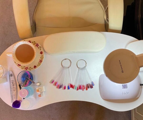 “I offer hot drinks, including decaff and camomile tea,” Chantelle continues. ” I play music and when I get to know my clients, I put on music that I know they’ll enjoy. I want my clients to know that their time with me is for them to relax, be looked after and be listened to. I did a year of training as a counsellor in 2019, and having good listening skills is part of being a great nail tech!”