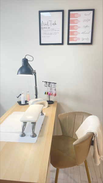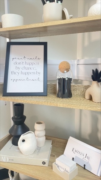 Wanting her Newport-based salon decor to reflect her own personal style, natural nail tech, Kaitlyn Jay, opted for an on-trend, neutral colour scheme.