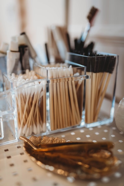 “I have made the salon as environmentally friendly as possible. I use bamboo spoolies and cotton buds, and biodegradable wipes to clean my tools and surfaces from Navy Pro Tools.