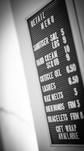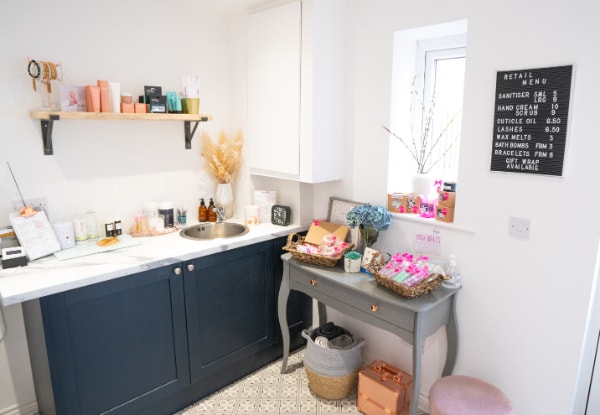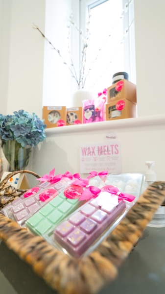 “I do also offer some retail items,” Emma observes. “I do what I can to support other local business and I work closely with Lily Coco Home Scents who supplies me with beautiful wax melts, bathbombs and much more. I also have a link up with a local florist who makes the most stunning hand tied bouquets, called Dotty Blooms.”
