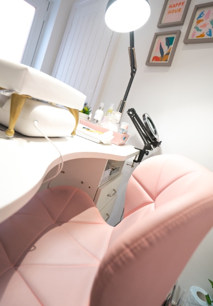 “I’ve added a bit of colour with my pink chairs and also the tan Chloe Brow Chair by Living it Up Salon.