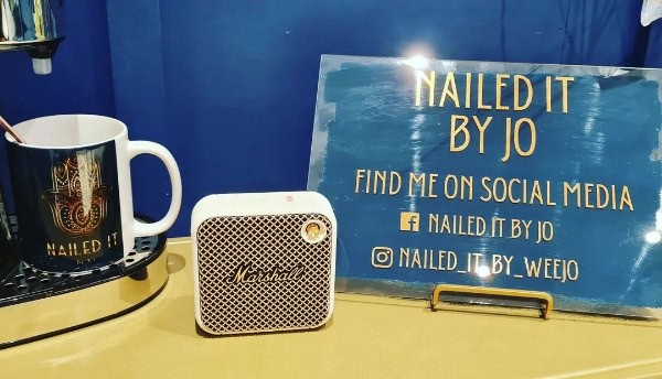 Letting clients choose their own music to play through a speaker in the salon, Jo shares her love for music and hearing the eclectic music choices of her clients. She also provides Nailed it by Jo chocolate coins, a selection of coffees and the option to enjoy a Prosecco or red wine on during Friday night treatments.