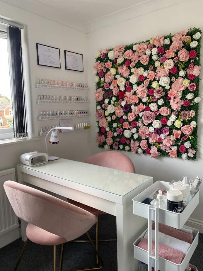 “I think the decor has a big influence; a lot of clients have come to me because they’ve seen my set up. Clients love getting their nalfies against my flower wall and taking snaps while they are here. I feel it’s important as I want them to enjoy the time they are here for their appointment. It makes me happy seeing my clients happy.”