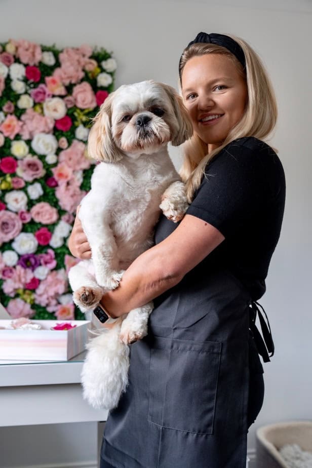 “I have a little Shih Tzu, who loves to greet my clients as they enter and then will patiently wait for their treatment to be done before asking for a belly rub before they leave!