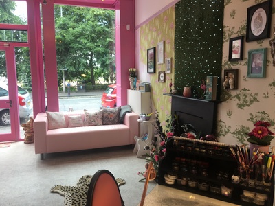 “After working in a salon for a few months, I realised I wanted more control over my brand and image,” Frenchie explains. “A small studio space opened up in a beautiful old building, and I jumped at the chance to start up Neverland there. After a year there, I had the desire, confidence and client base to build Neverland into something bigger and more visible. When the shop on Elderslie Street became available, overlooking a leafy park, two minutes from my original studio, I knew I needed to be there! The shop was too big for just me, so I’m currently hosting a pop-up shop from Dragonfly & ButterBee Vintage, my new neighbours and clients of mine. They specialise in vintage style bridal wear, but are branching out into 1950s day wear. I just want to play dress up all the time!”