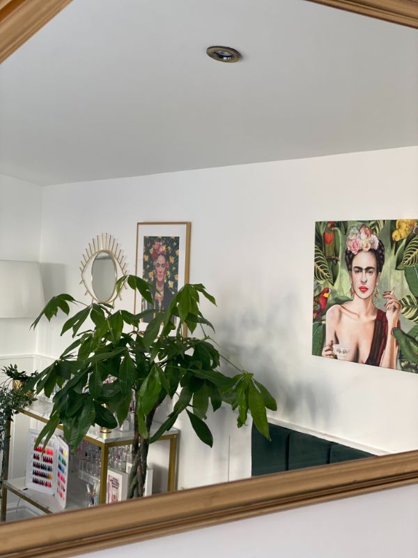 Welcoming and fresh, the salon’s décor draws inspiration from a number of sources. “I decided to go for a minimal look, while also bringing in some art deco touches with golds and greens,” Kelly adds.
