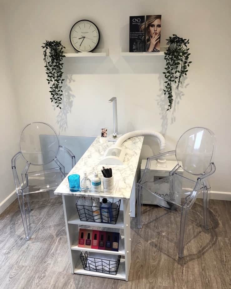 “The goal was always to create a clean, professional looking studio that had a modern twist to it, but looked a bit different to other salons in the area. I feel I’ve achieved this by using white on the walls to make it feel clean and clinical, but I’ve added a hint of colour with the teal chairs and black accessories. It’s not a large room so I tried to make it look and feel spacious, which I think I’ve achieved.