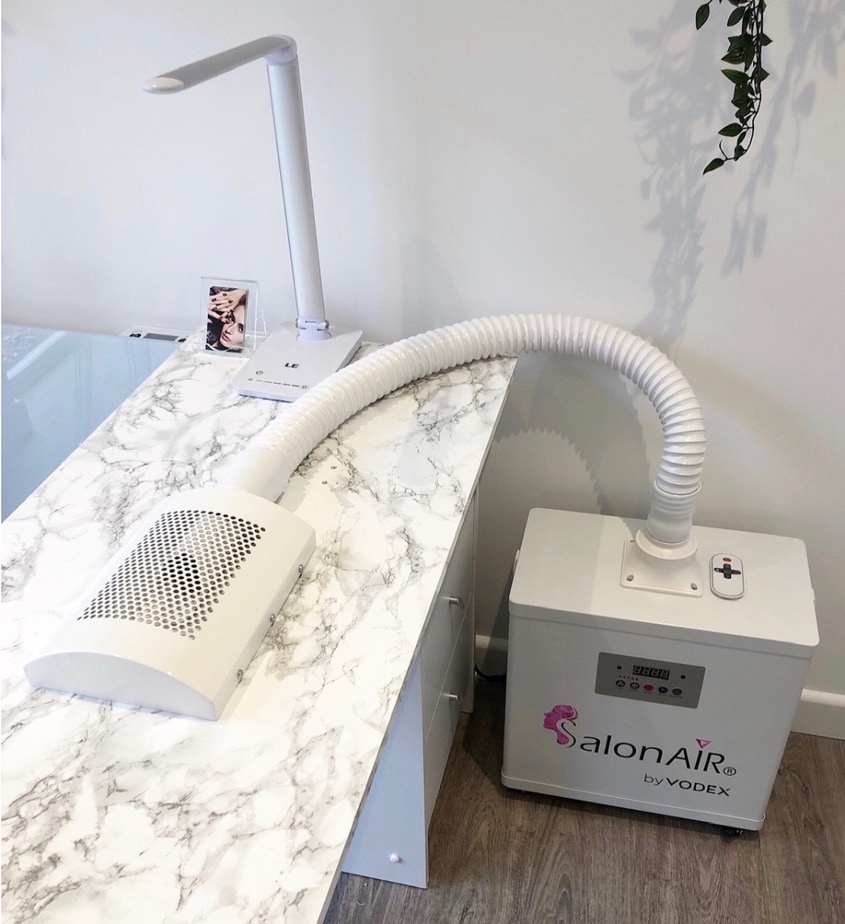 “I pride myself on using the best and the safest products on the market. I also have a Vodex SalonAir FileOWAY extraction system in place, which helps remove harmful fumes and airborne dust that’s generated in the salon environment. I’ve also included a H13 HEPA filter into the system for extra protection.