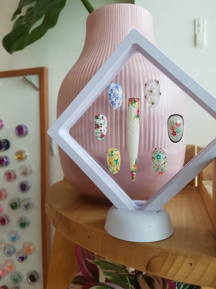 “I offer a simple menu of high-quality gel nail treatments; simple gel manicures and Aprés Gel X service but the nail art is my thing. Super simple to super complicated – I’ll try anything. A popular service I offer is a ‘Mystery Manicure’; the clients let me decide what they’re having on their nails for a reduced cost. The client gets a discounted service and I get to be creative so it’s a win-win!
